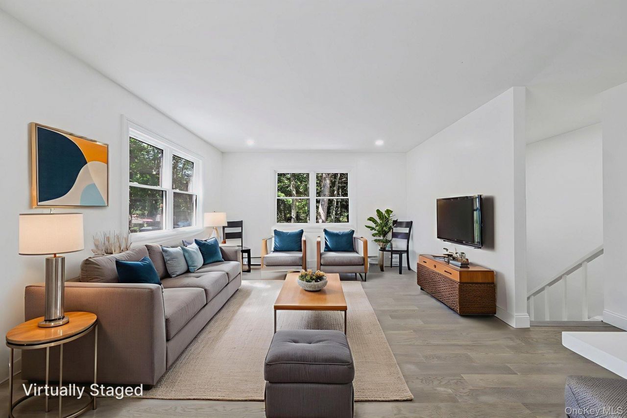 Experience modern living in this newly renovated split-level home, thoughtfully designed for comfort, flexibility, and style. The interior boasts brand-new windows throughout and a contemporary kitchen equipped with sleek stainless steel appliances.The lower level offers a spacious and inviting den, a private bedroom, full bathroom, and laundry area. A separate walk-out entrance adds convenience and offers flexible living potential, perfect for a family room, guest quarters and so much more. Main-level you'll find 2 bedrooms, full bathroom, a bright and airy living room, and an open-concept kitchen and dining area-perfect for everyday living and entertaining. Sliding glass doors lead to an elevated deck overlooking a beautifully large & leveled backyard. At the heart of the outdoor space is a 16' x 32' in-ground pool, featuring brand-new vinyl lining and a surrounding deck that offers generous space for outdoor dining, lounging, and summer gatherings-creating a true backyard oasis.Engineered hardwood throughout.Waterproofing for the basement, LED recessed lighting throughout. New Washer and dryer are pending delivery.HVAC system is being installed **All information is deemed reliable but should be independently verified.A 2.5% Peconic Bay Region Community Preservation Transfer Tax may apply to the purchaserProof of funds required with all offers**